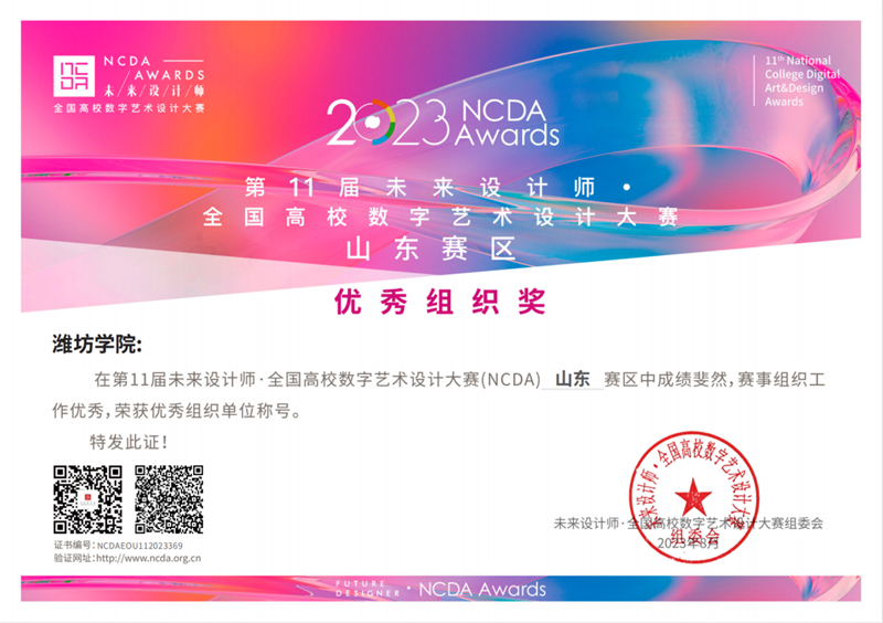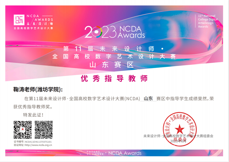 本网讯 近日,由工业和信息化部人才交流中心主办的2023第十一届未来设计师·全国高校数字艺术设计大赛(NCDA),公布获奖名单,我校美术学院(陈介祺金石书法学院)环境设计专业和视觉传达设计专业学子的作品,获得国赛一等奖1项,省赛一等奖1项,二等奖4项,三等奖4项。