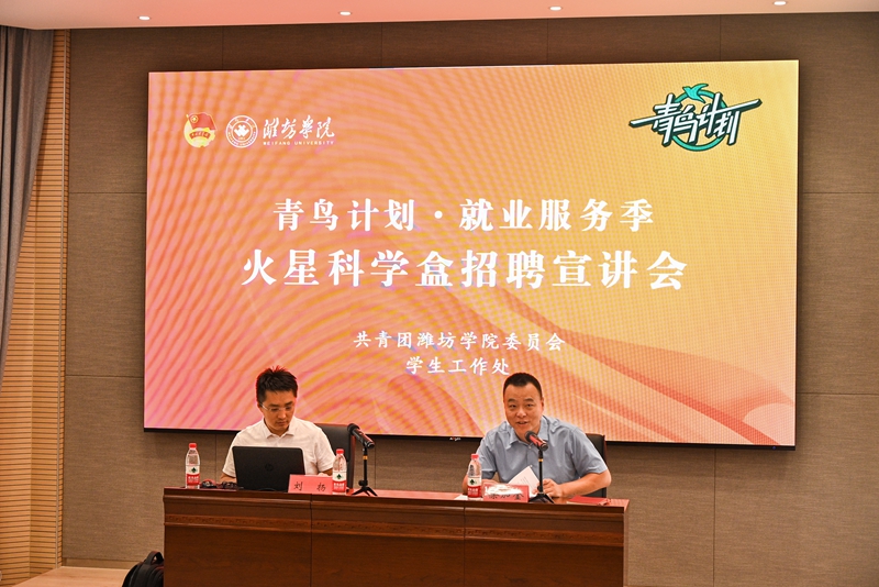 刘扬与同学们进行分享交流,了解同学们的职业发展理念、期望和职业规划,向同学们介绍了自己的创业初衷,分享了企业的创业历程,详细讲解了火星科学盒的商业模式、发展历程、产品技术、团队资质、市场分析、社会价值、企业文化和取得的成绩,鼓励同学们要立足长远、勤于学习、勇于挑战,锚定目标坚持不懈,成就更好的奋斗人生。宣讲会上,公司人事经理刘宁详细介绍了此次招聘涵盖商务管培生机器人教师、少儿编程教师等多个岗位,在北京和潍坊等多个工作地点,介绍了薪资待遇和发展前景,并组织了现场招聘报名。