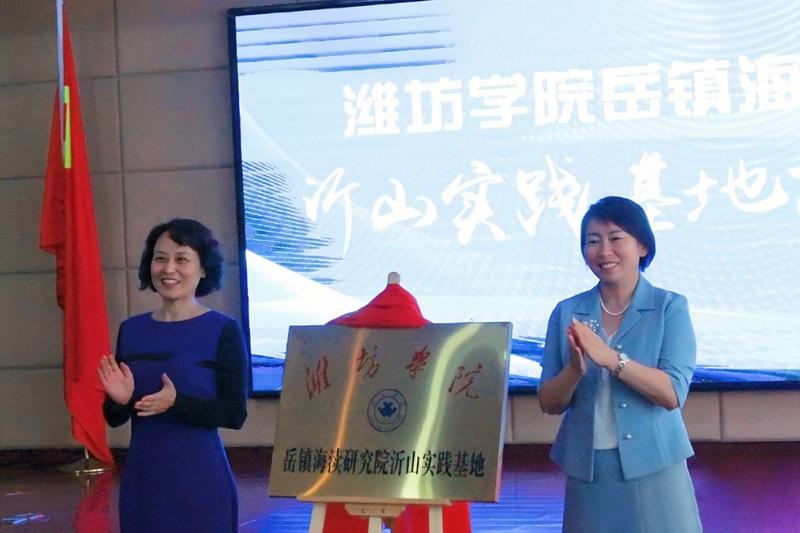 会上,徐梅和刘艳芳共同为“潍坊学院岳镇海渎研究院沂山实践基地”揭牌。