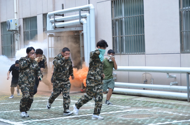 本网讯 弘德社区学生公寓响起了刺耳的警报声,一股浓烟从房间内窜了出来“着火啦,快跑啊———”身着军训服装的2023级新生用湿毛巾捂住口鼻,在军训教官和工作人员的引导下迅速而有序地从公寓楼内撤离出来……这是2023级新生消防逃生演习中的一幕。