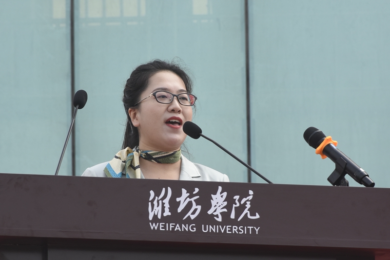 山东省第十届高校青年教师教学比赛一等奖获得者、2023年国家自然科学基金青年项目获得者,建筑工程学院陈明明作为教师代表发言。她勉励同学们在大学期间学会做人和做事,学会学习和生活,锤炼意志、涵养品格,勤学广识、不断进取,勇于探索、激发创造。她代表全校教师承诺,将用爱心和耐心对待每一位同学,以自己全部的知识和热情,助力每一位同学的成长、成才。