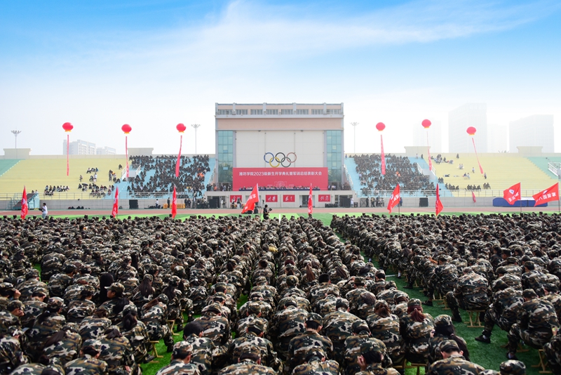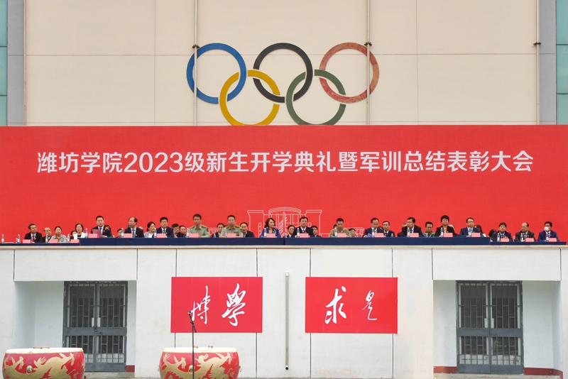 本网讯 金秋九月,硕果累累。9月28日,潍坊学院2023级新生开学典礼暨军训总结表彰大会在学校体育场举行。6868名2023级新同学完成军训的磨炼,开启大学新生活。