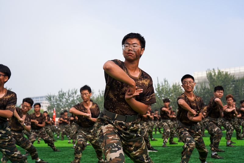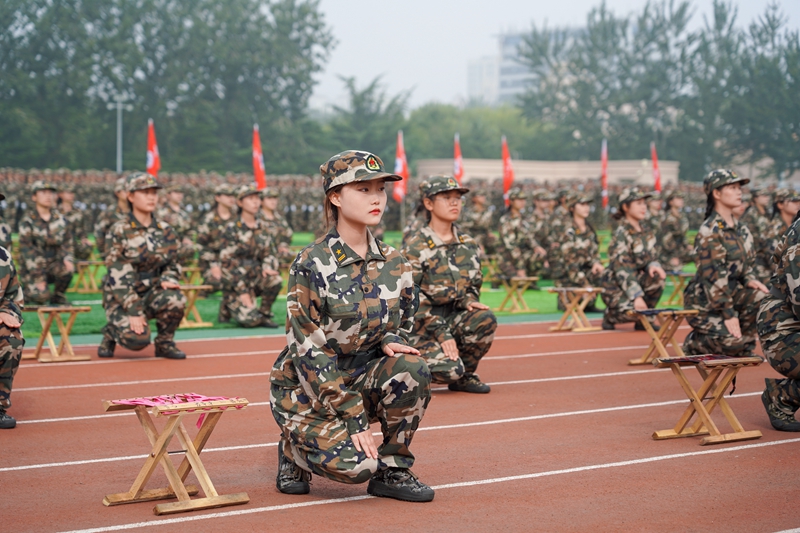 庄严的升国旗仪式后,徐梅宣布军训总结汇报开始。