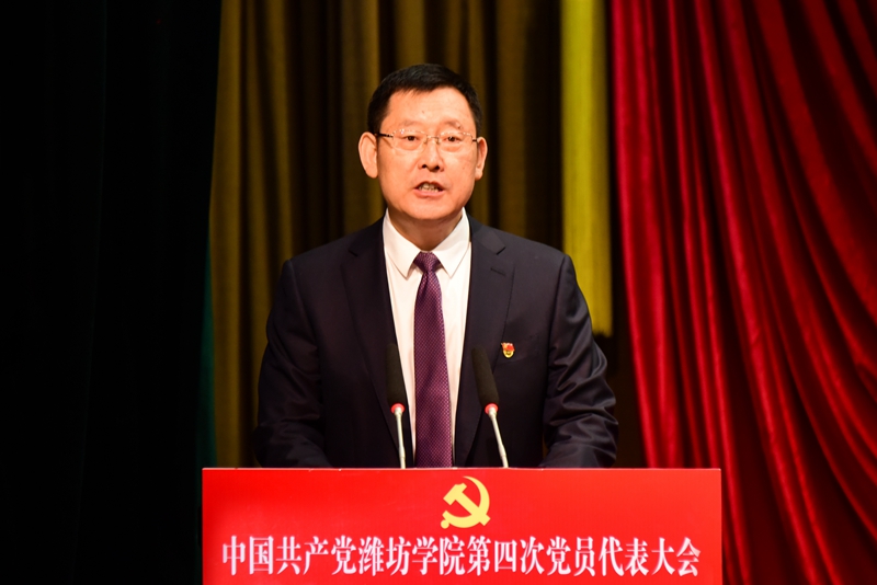 本网讯 凝心聚力求突破,挺膺担当铸新篇。10月28日上午,中国共产党潍坊学院第四次党员代表大会在学校图书馆报告厅隆重开幕。中共潍坊市委书记、市人大常委会主任刘运同志出席。中共山东省委教育工委委员、省教育厅党组成员、副厅长仲红波同志,中共潍坊市委常委、宣传部部长、市委教育工委书记杨建华同志分别讲话。徐梅同志向大会作报告。来逢波同志主持开幕式。