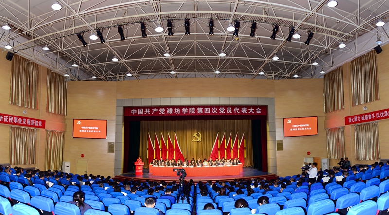 中国共产党潍坊学院第四次党员代表大会,是在全校上下深入学习贯彻党的二十大精神,勇于担当教育强国强省建设时代使命,锚定“走在前、开新局”,全面落实学校“十四五” 发展规划,加压奋进高质量发展新征程的关键时期,召开的一次十分重要的会议。大会的主题是:高举习近平新时代中国特色社会主义思想伟大旗帜,深入学习贯彻党的二十大精神,认真落实省第十二次党代会精神,坚守“为党育人、为国育才”初心使命,聚焦立德树人根本任务,求真务实、守正创新,凝心聚力、挺膺担当,为在新的历史起点上加快建设国内一流应用型大学而不懈奋斗。