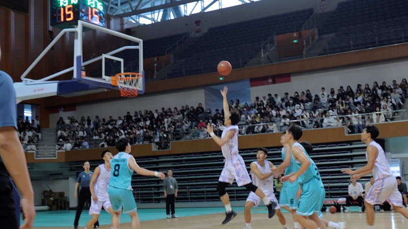 仪式前,我校男篮和山东科技职业学院男篮进行了一场精彩的表演赛,我校体育学院和音乐学院学生贡献了暖场表演。