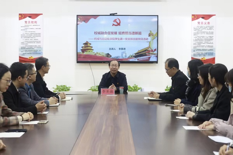 本网讯 11月9日,学校党委委员、副校长李英德到机械与自动化学院(潍柴产业学院)学生党支部为学生党员讲思政课,宣讲学校第四次党员代表大会精神,并参加“校城融合促发展 挺膺担当谱新篇”主题党日活动。