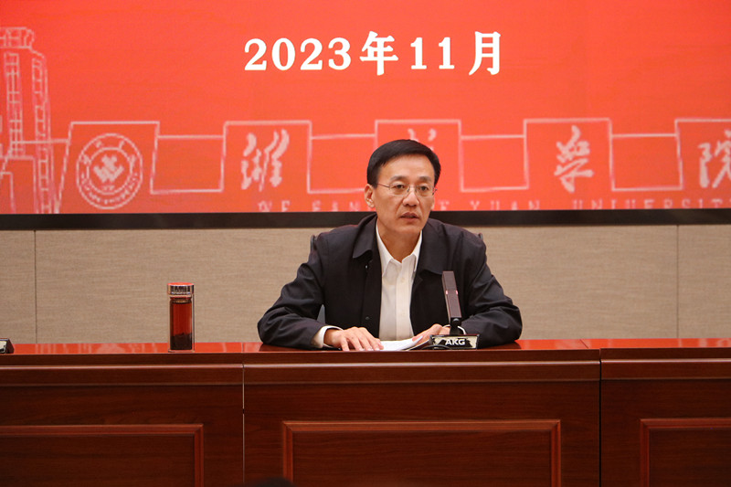 本网讯 11月13日,学校党委副书记、校长来逢波到经管学院宣讲学校第四次党员代表大会精神,经管学院全体教师和部分学生代表参加。来逢波与师生面对面,讲授了一场精彩的思政课。
