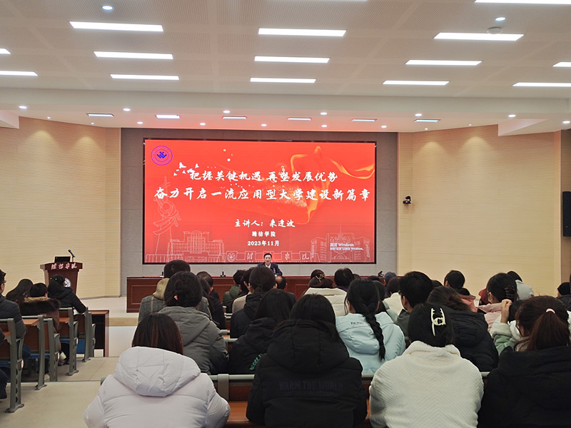 来逢波以《把握关键机遇 再塑发展优势 奋力开启一流应用型大学建设新篇章》为题进行宣讲,回顾中国共产党从一大到二十大历次全国代表大会背景和历史意义,介绍学校第四次党员代表大会召开的主题和重要意义,对会议报告《凝心聚力求突破 挺膺担当铸新篇 为建设国内一流应用型大学而不懈奋斗》“放眼世界、心怀国家、立足地方、面向未来”的战略定位予以清晰阐释,对宏大的“三步走”战略、清晰的“一二三四五”发展思路和办学治校的“八大工程”等内容进行细致解读,鼓励师生树牢信心,共同努力把大会确定的奋斗目标变成美好现实。