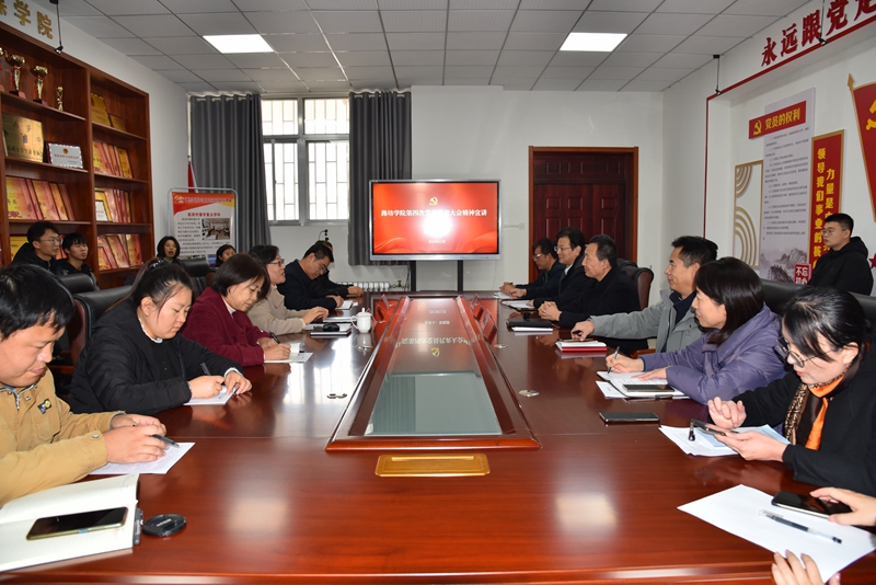 张晓静围绕深刻认识会议的重大意义、全面理解会议精神实质和丰富内涵,深刻认识新时代新征程的使命愿景和战略安排等方面展开宣讲,对第四次党员代表大会提出的“三步走”发展战略,“一二三四五”发展思路,奋力谱写新时代新征程事业发展新篇章,以高质量党建引领学校事业高质量发展等重点内容作了深入阐释。她强调大会报告对学校未来一个阶段的发展擘画了宏伟蓝图,鼓励大家要紧紧围绕学校党委提出的办学治校“八大工程”,积极开拓创新,勇于担当作为,增强爱潍爱校热情,做深做实“四融文章”,为早日建成国内一流应用型大学努力奋斗。