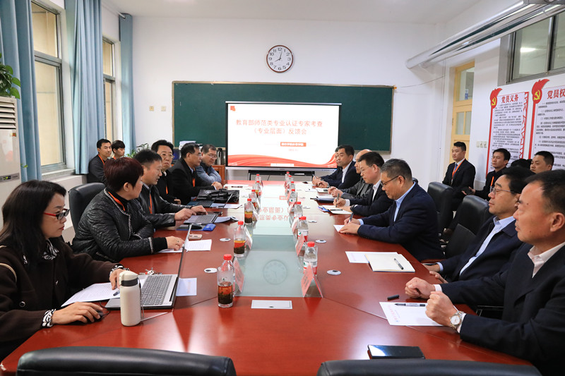 11月22日上午,学院、学校分别召开了专业层面和学校层面反馈会。在专业层面反馈会上,各专业专家组组长介绍了本专业考查的整体情况并给出反馈意见,专家组成员一一进行反馈,各认证学院领导作了表态发言。在学校层面反馈会上,叶忠教授代表专家组介绍了四个专业的整体考查情况,四个专业专家组组长分别针对专业学校层面存在的问题进行了反馈。专家组充分肯定了我校师范专业人才培养取得的成绩,也指出了存在的问题、不足,开出了一份全面详实的“体检报告”和切中要害的“改进良方”。