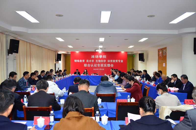 本网讯 11月19日-22日,教育部联合认证专家组一行24人对我校特殊教育、美术学、生物科学、体育教育四个师范类专业进行二级认证现场考查。南京师范大学叶忠教授任联合认证组长兼特殊教育专业认证组组长,大连大学庞国彬教授任美术学专业认证组组长,河南师范大学张顺利教授任生物科学专业认证组组长,南京师范大学王庆军教授任体育教育专业认证组组长,山东省教育科学研究院副院长张斌出席见面会,山东省教育科学研究院师范类专业认证中心主任唐文秀参加相关活动。