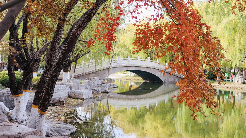 秋染湖桥 于霁摄
