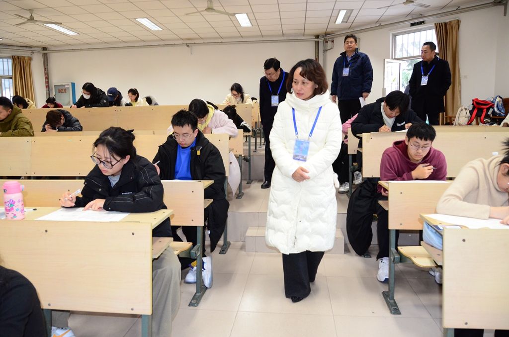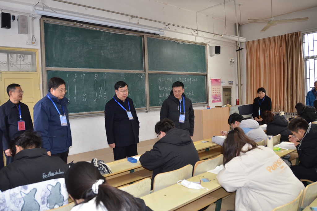 本网讯 1月8日,学期期末考试第一天,校党委书记徐梅,党委副书记、校长来逢波等党委领导班子成员带领教务处、学生工作处、相关学院负责同志深入考场巡视期末考试工作。