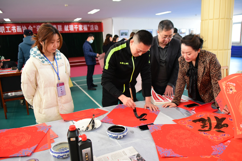 活动现场,协会会员挥毫泼墨,笔走龙蛇,将一幅幅寓意吉祥、充满祝福的春联和“福”字赠送给参与活动的教职工。教职工们表示,这些春联和“福”字不仅寄托了春节的美好祝愿,同时感受到了传统文化的深厚底蕴。