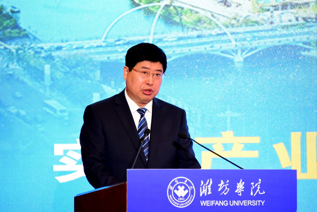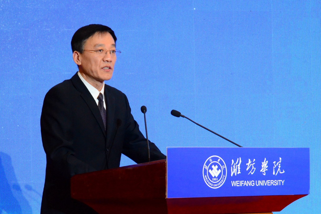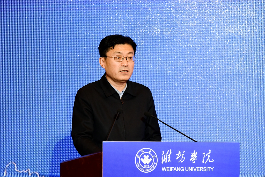 王浩在致辞中表示,省委、省政府高度重视人才工作,大力实施科教强鲁、人才兴鲁战略,扎实推进人才“引育用服”模式创新,全力打造新时代教育人才集聚高地。希望潍坊学院紧紧锚定党和国家重大战略需求,把握教育的战略属性,加速推动教育、科技、人才的深度融合和一体化推进,积极服务山东省绿色低碳高质量发展,奋力书写新时代社会主义现代化强省建设新篇章。