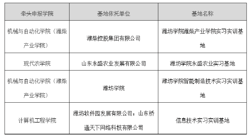 本网讯 近日,山东省教育厅公布了2023年山东省普通高等学校示范性实习(实训)基地名单,我校4个实习实训基地成功获批,在全省同类高校位居前列。