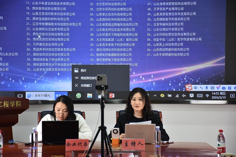 据悉,此次活动共吸引包括潍坊佳诚数码材料有限公司、中电金信软件有限公司等62家企业到校招聘,招聘专业涉及计算机科学与技术、软件工程、网络工程、机械设计制造及其自动化、电子信息工程、市场营销等多个领域。共有1600余名学生参加,线上直播浏览量达600余人次,提供岗位578个,收到简历704份,初步达成意向270人。