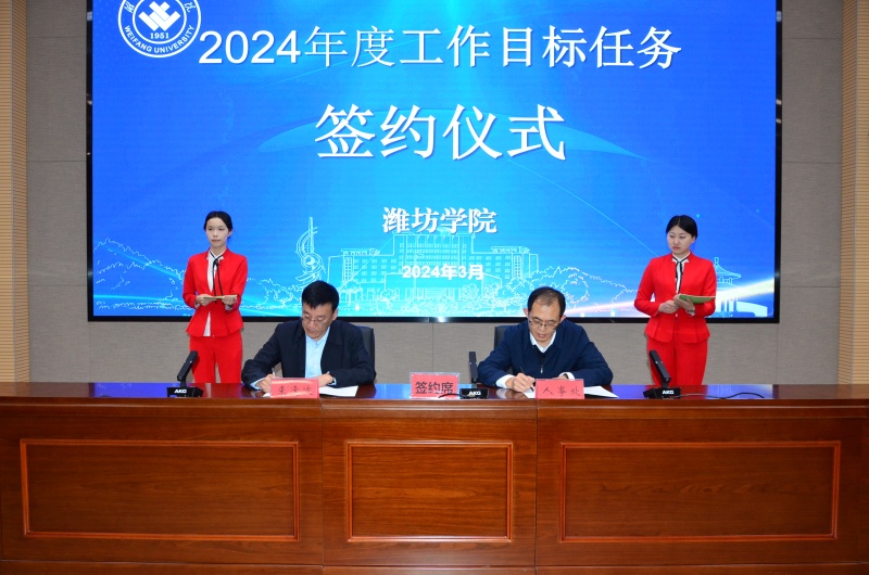 会上,人事处、教务处、科研处、国际交流合作处、物理与电子信息学院、现代农学院、土木与交通学院、外国语学院分别围绕2024年度本单位需完成的目标任务、工作措施进行了详细阐述。来逢波分别与人事处、教务处、科研处、国际交流合作处四个职能部门签订2024年度工作目标任务书。