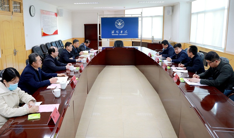 座谈会上,王守全对李春野一行的到来表示热烈欢迎,他详细介绍了学校近年来在学科建设、师资队伍、人才培养、科学研究以及社会实践等方面取得的成绩。李英德介绍了学校发展规划和服务潍坊经济社会发展等方面的具体措施,希望双方能够搭建起长效合作的桥梁,推进校地合作共创共赢。