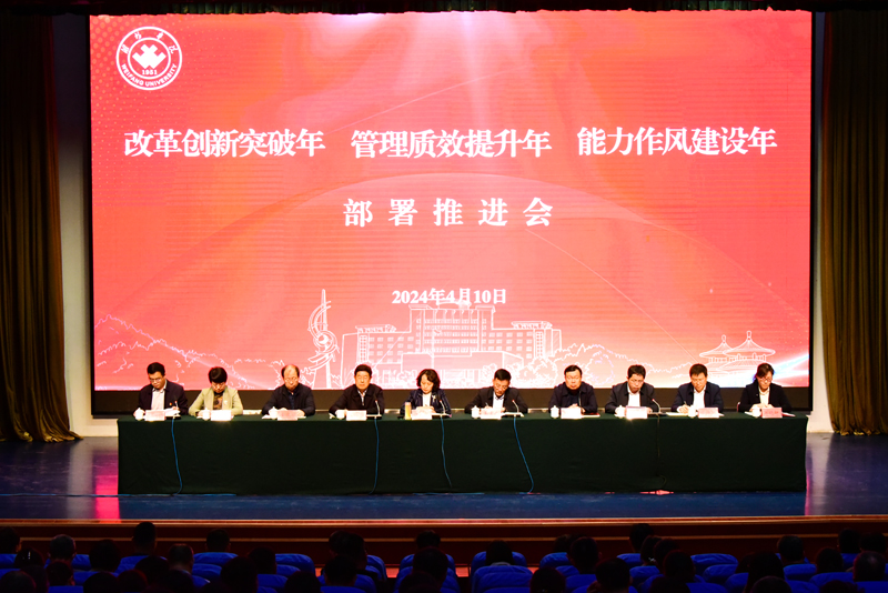 徐梅在讲话时指出,开展“三大行动”是实现学校高质量跨越式发展的必然要求,是落实第四次党代会目标任务的重要抓手,是激发干部教师干事创业精神的关键举措。她要求,要推动思想观念变革,以有解思维破解改革难题,以思想大解放、观念大转变推动事业大发展。要突出服务内涵发展,把学科与专业建设、教育教学与人才培养、人才与师资队伍建设、高水平科技成果产出与转化、服务经济社会发展等核心指标的增长作为检验“三大行动”成效的重要标准。要深化放权赋能改革,牢固树立“学院办大学”“强院兴校”理念,进一步理顺校院两级权责关系,确保各项工作“有人干”“干得好”。要推进流程优化再造,全面构建上下贯通、内外协调的沟通机制。要狠抓能力作风提升,倡树学校第四次党代会提出的“三个率先”工作理念,扎实开展好党纪学习教育。要着力优化评价体系,向管理要效益,向改革要潜力,向机制要活力,不断激发内生动力。