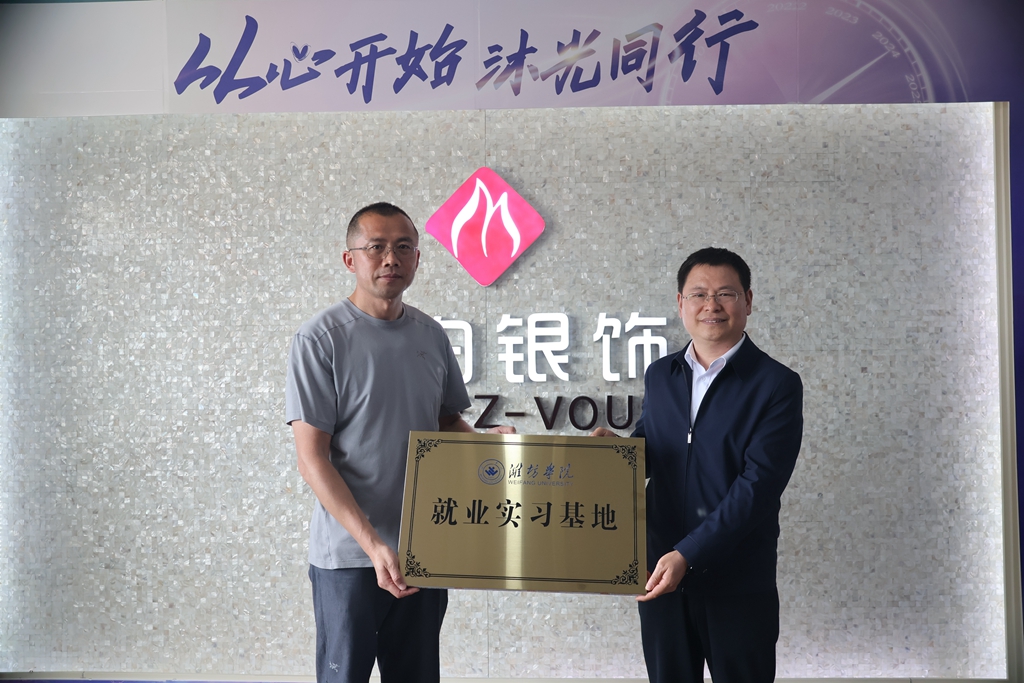 音乐与舞蹈学院负责同志与程维分别代表校企双方签署《就业实习基地建设及相关教科研合作协议》,任立春为潍坊天和珠宝有限公司授“就业实习基地”牌匾。