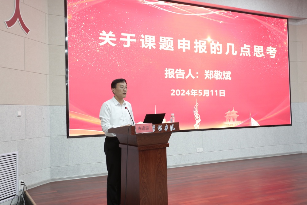 本网讯 为全面提升学校师生在人文社科领域的科研能力,5月11日,学校邀请山东大学人文社科研究院院长、山东省高校思想教育教学研究会会长郑敬斌教授作专题学术报告。报告会由学校党委副书记、校长来逢波主持。