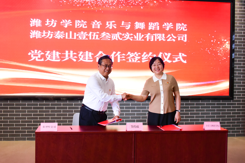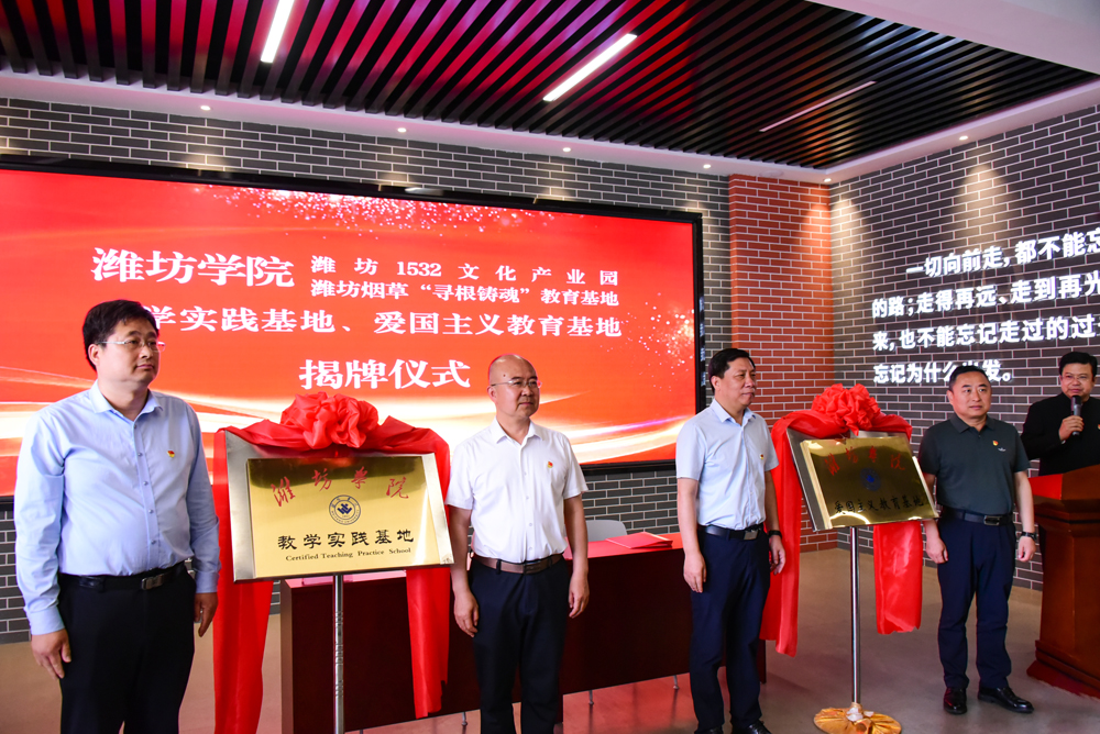 在英美烟公司旧址博物馆,中心组成员先后到“寻根铸魂”主题展馆、1913文化中心等地开展沉浸式现场教学。学校教务处、学生处主要负责人分别与潍坊恒建集团、潍坊市烟草专卖局(公司)负责人为“教学实践基地”和“爱国主义教育基地”揭牌,音乐与舞蹈学院党委与潍坊泰山壹伍叁贰实业有限公司党委共同签订党建共建合作协议。中心组成员现场观摩了我校音乐学院师生排演的舞台上的思政课——《卅一年华之歌》。奎文区委副书记、区长刘建安,奎文区政府党组成员、副区长袁燕等陪同参加活动。