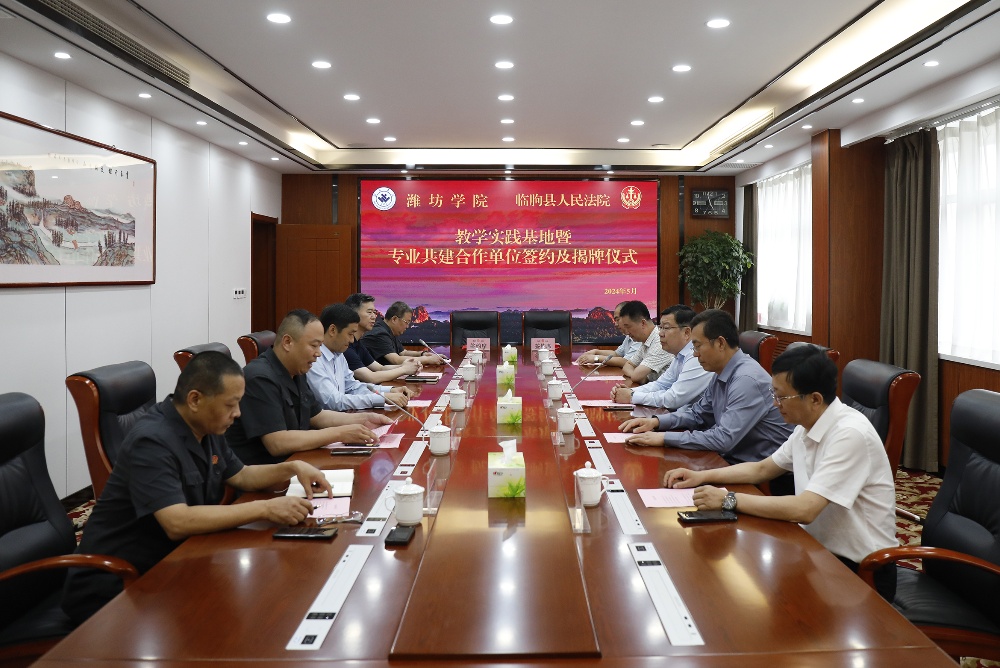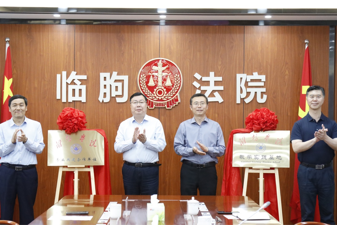 王成端介绍了潍坊学院的基本情况。他表示,此次“教学实践基地”“专业共建合作单位”的建立是推动学校内涵式高质量发展、服务潍坊地方建设的重要体现。希望以此次活动为起点,加强双方的沟通与交流,建立起长效合作机制,在实习实训、理论研究、普法宣传、志愿服务等多方面开展多层次、多形式的深度合作,为县域经济发展提供人才智力支撑,共同打合作的典范。