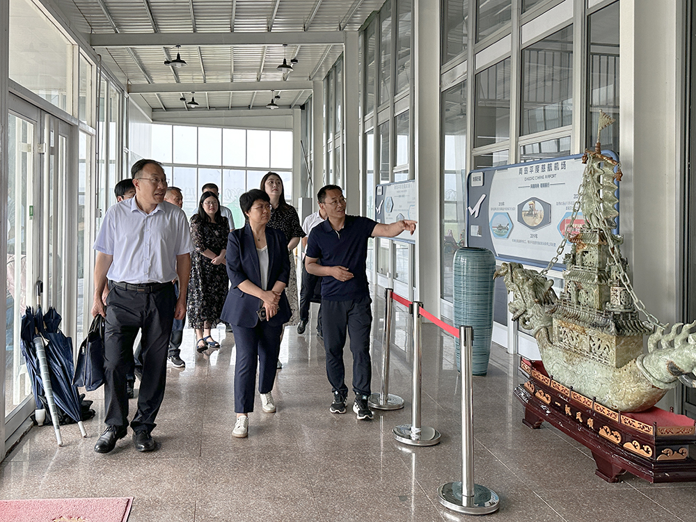 在青岛慈航机场,赵卫红详细了解机场建设、运营与职业培训开展情况,参观机库和实训场地,就合作开展职业培训进行洽谈交流。