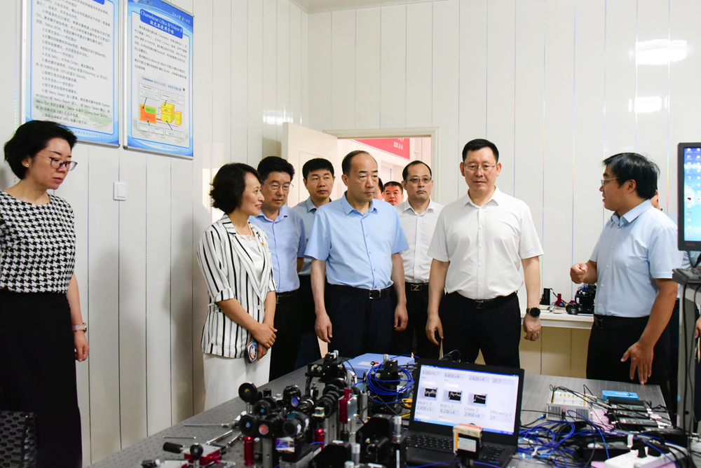 会前,与会领导嘉宾集体参观了学校水生态安全与环境工程学院研发实验室、捕获与催化转化研究实验室、化学化工与环境工程学院实训室、美术学院学生作品展、山东省“多光子纠缠与操纵”高校重点实验室等。