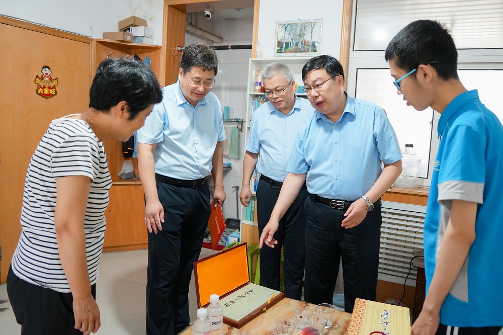 本网讯 潍坊学院录取工作正在有序进行,截至目前,第一批录取通知书已经准备完毕。为让新生第一时间体验收到录取通知书的喜悦,8月2日,学校党委委员、副校长王成端将学校2024年首封录取通知书送至新生张文政家中。