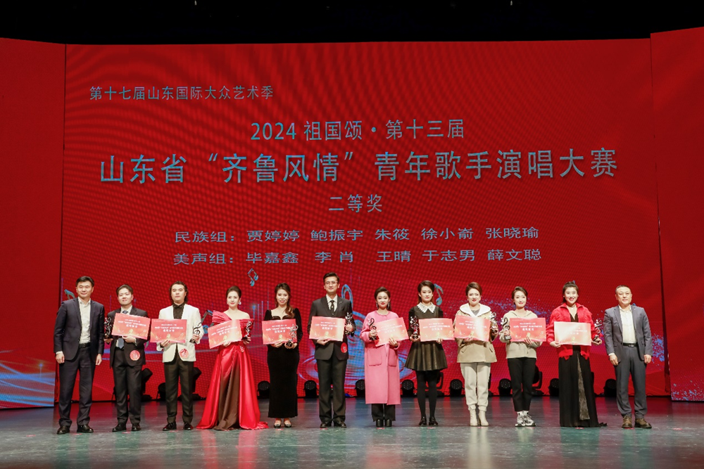 本网讯 11月15日至17日,第十七届山东国际大众艺术季——祖国颂·第十三届山东省“齐鲁风情”青年歌手(民族组、美声组)演唱大赛在威海举办。我校音乐与舞蹈学院教师朱筱获民族组二等奖,董乐获优秀艺术指导奖。