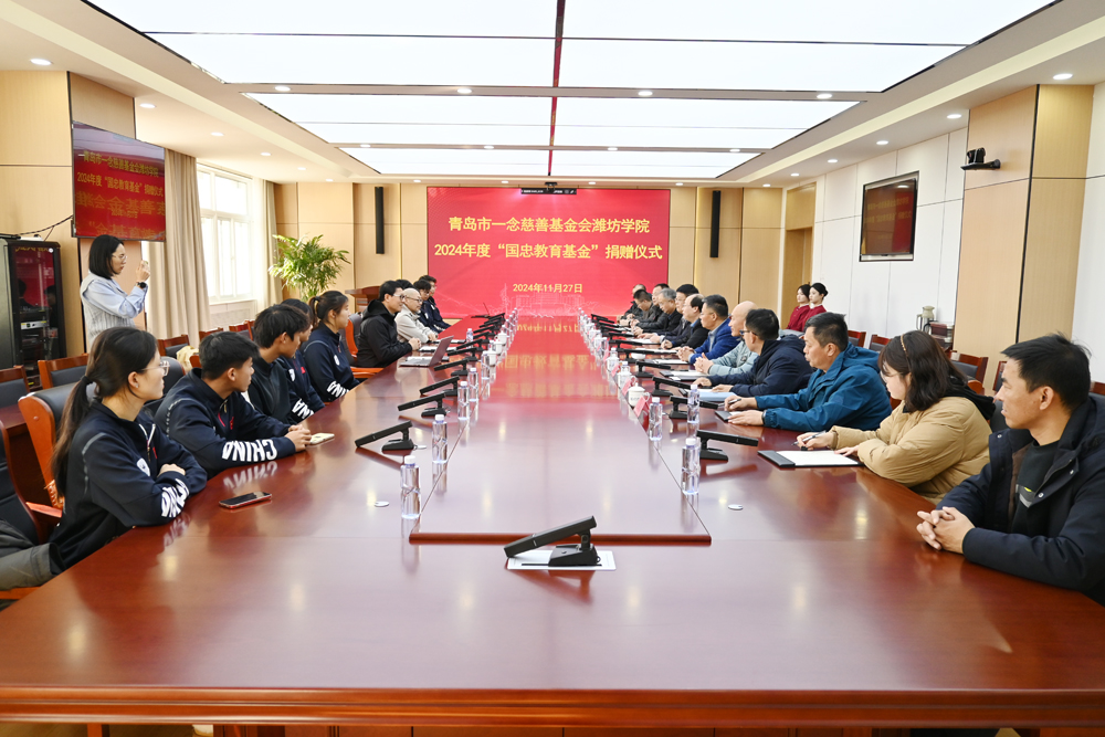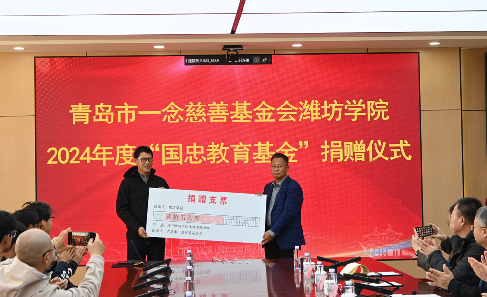 本网讯 11月27日,青岛市一念慈善基金会2024年度“国忠教育基金”捐赠仪式在学校举行。学校党委委员、副校长、教育发展基金会理事长李英德,山东力威集团董事长、青岛市一念慈善基金会理事长刘国忠,青岛市一念慈善基金会秘书长王唯出席活动。