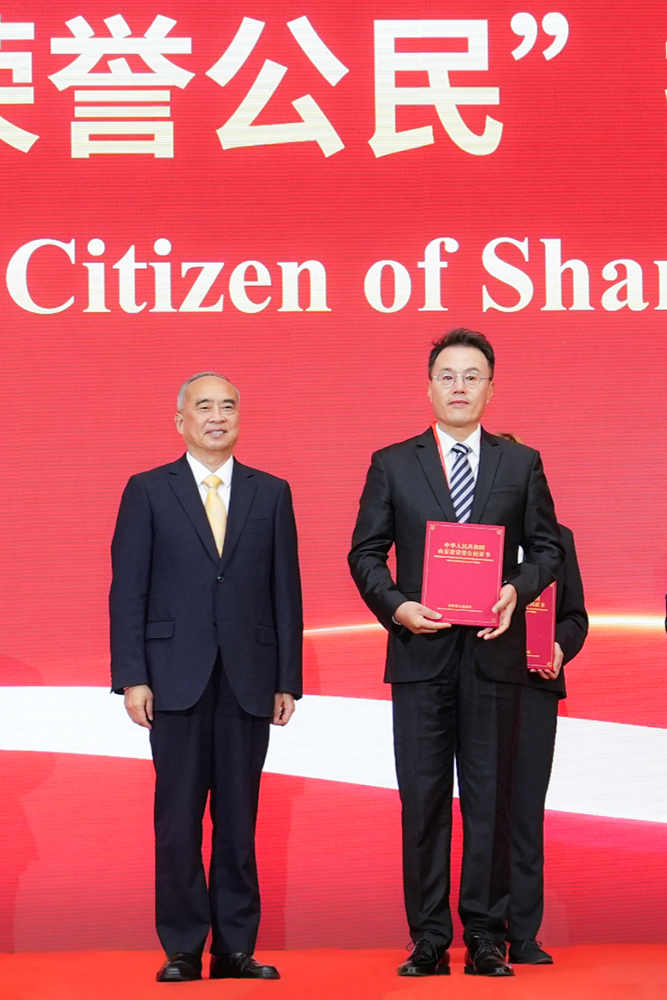 本网讯 9月29日,中华人民共和国成立76周年山东省庆祝活动在山东大厦金色大厅举行。省委书记林武,省委副书记、省长周乃翔等省领导出席活动。会上,宣读了2025年“山东省荣誉公民”授予决定,授予18人“山东省荣誉公民”。学校韩国籍教授韩钟镇获此称号并作为代表之一现场接受林武书记颁发证书。活动期间,韩钟镇还参加了由山东省委外办组织的国际友人建言献策座谈会。