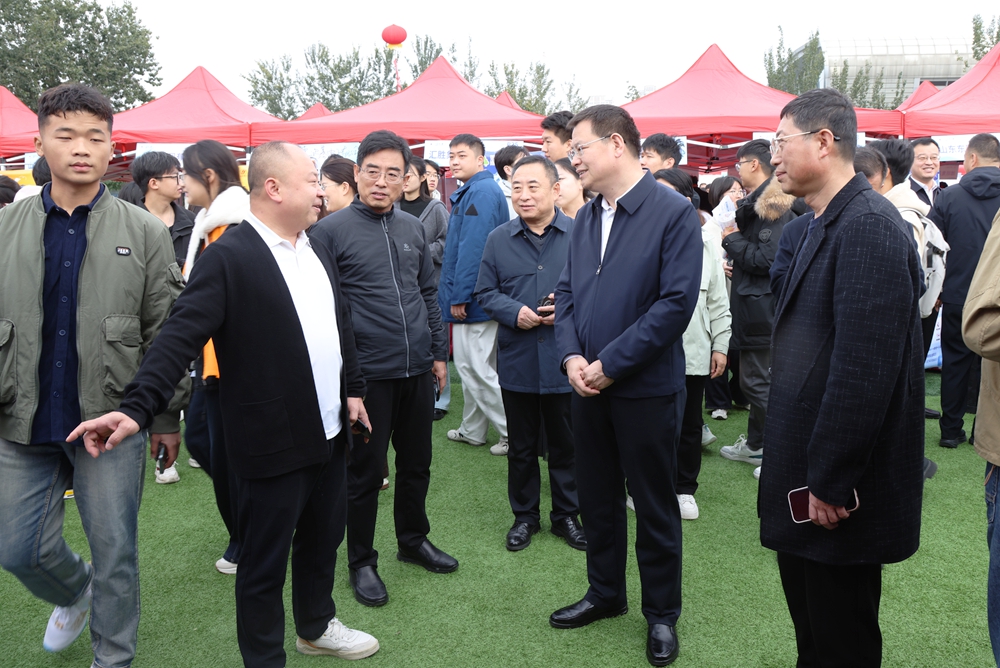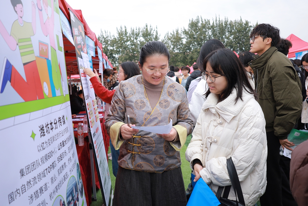 本网讯 10月24日,“就选山东”高校毕业生校园招聘系列活动胶东经济圈综合类专场暨山东省大学生就业引航计划专场招聘会在学校体育场举行。学校党委委员、副校长任立春,潍坊市公共就业和人才服务中心党委委员、副主任秦志伟出席活动。