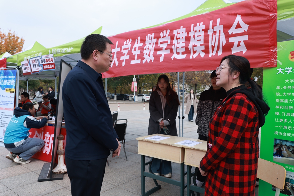 活动现场,任立春与同学们深入交流,询问社团开展的日常活动和纳新情况,了解新成立学生社团与年度优秀学生社团情况。他希望同学们,要心系社团、热爱社团、深耕社团,以多元创新激活社团活力,将学生社团打造成第二课堂的育人高地与成长沃土;要在丰富多彩、充满朝气的校园生活中有所得、有收获、有成长,于实践中锤炼本领,于协作中凝聚力量,让青春在社团实践中绽放别样光彩。