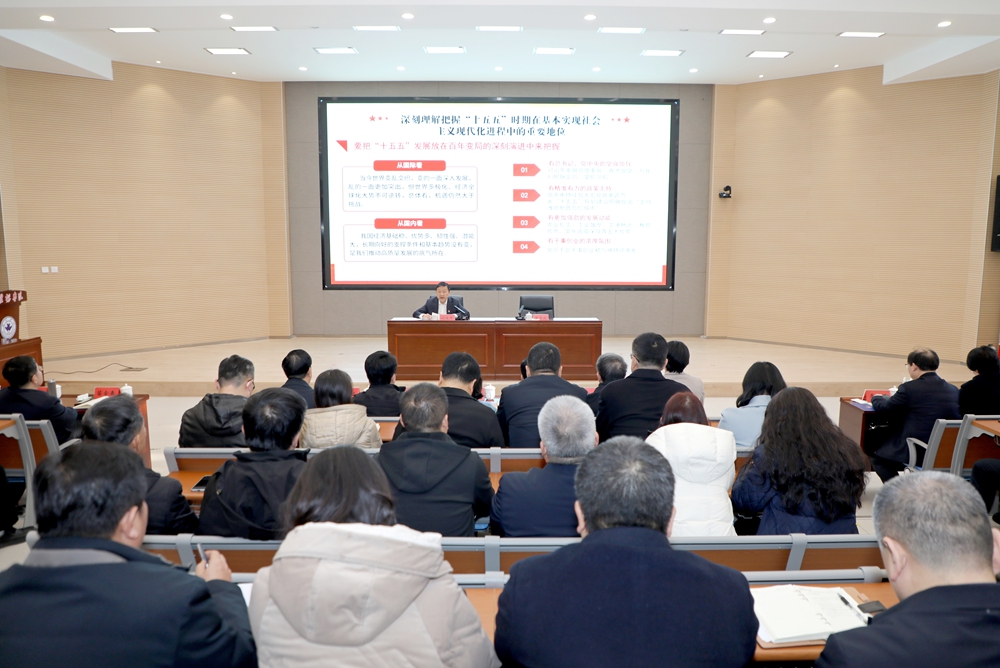 刘建军指出,党的二十届四中全会是在即将进入基本实现社会主义现代化夯实基础、全面发力的关键时期召开的一次十分重要的会议。要深刻学习领会习近平总书记重要讲话精神和全会审议通过的“十五五”规划建议,充分认识“十四五”时期我国发展取得的重大成就,深刻理解把握“十五五”时期经济社会发展的指导方针、主要目标、战略任务、重大举措,切实把思想和行动统一到党中央决策部署上来,深刻领悟“两个确立”的决定性意义,增强“四个意识”、坚定“四个自信”、做到“两个维护”。