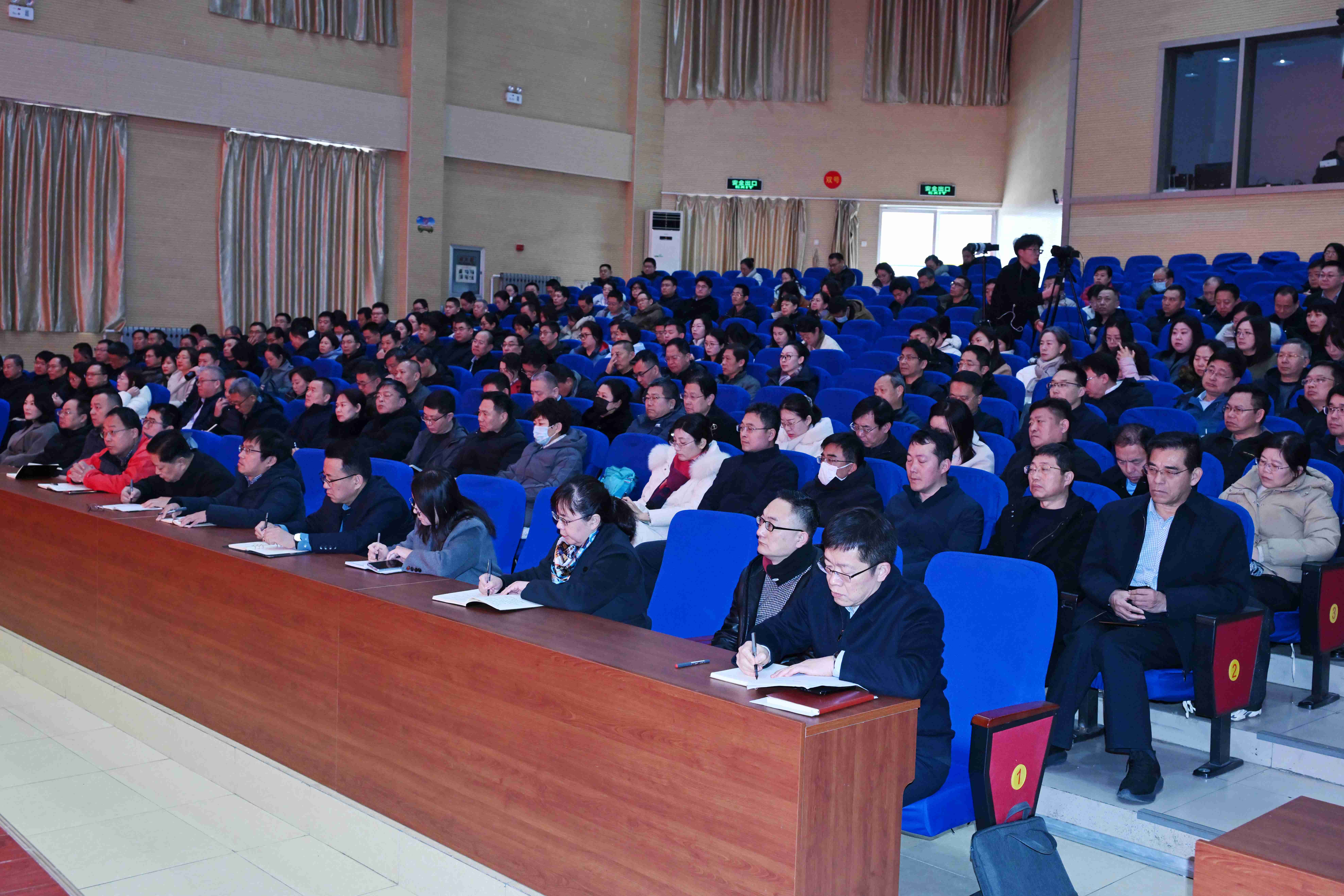 会议采用线上线下相结合的方式召开,主会场设在学校图书馆报告厅。全体处级干部,管理、教辅部门科级干部,各学院综合办主任、学工办主任、团委书记在现场参会,全校教学科研一线教师及其他教职工由各单位组织线上收看直播。